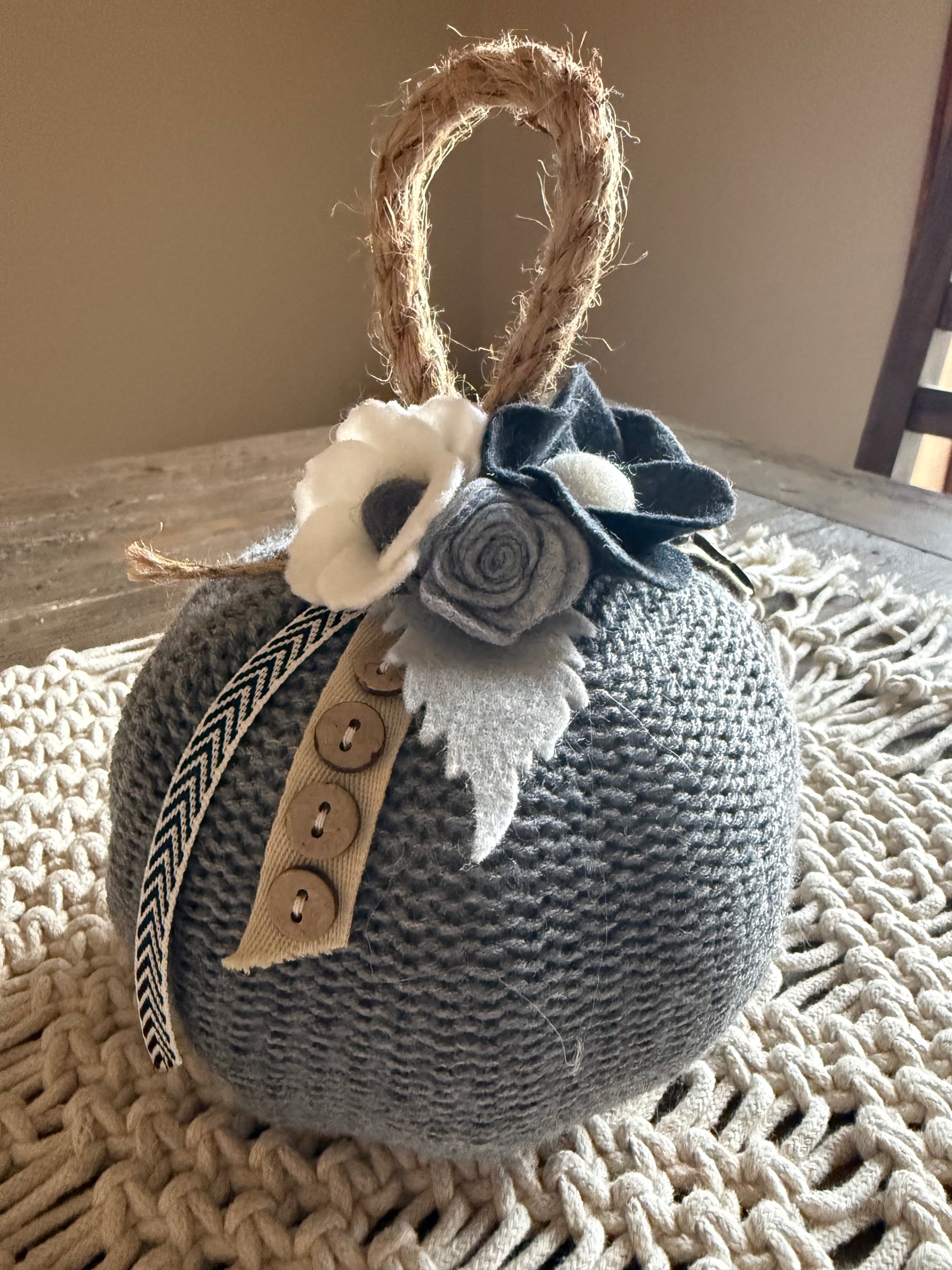 Blessing Pumpkins combine the warmth of traditional autumn decor with handcrafted felt flowers for a refined, cozy aesthetic. These elegant sweater pumpkins offer a textured, soft appearance that adds depth and charm to any space. Perfect for enhancing seasonal displays or gifting, their artisanal design brings a subtle touch of sophistication to fall arrangements. Durable and thoughtfully constructed, they provide a long-lasting decorative accent that embodies the spirit of gratitude and harvest season.